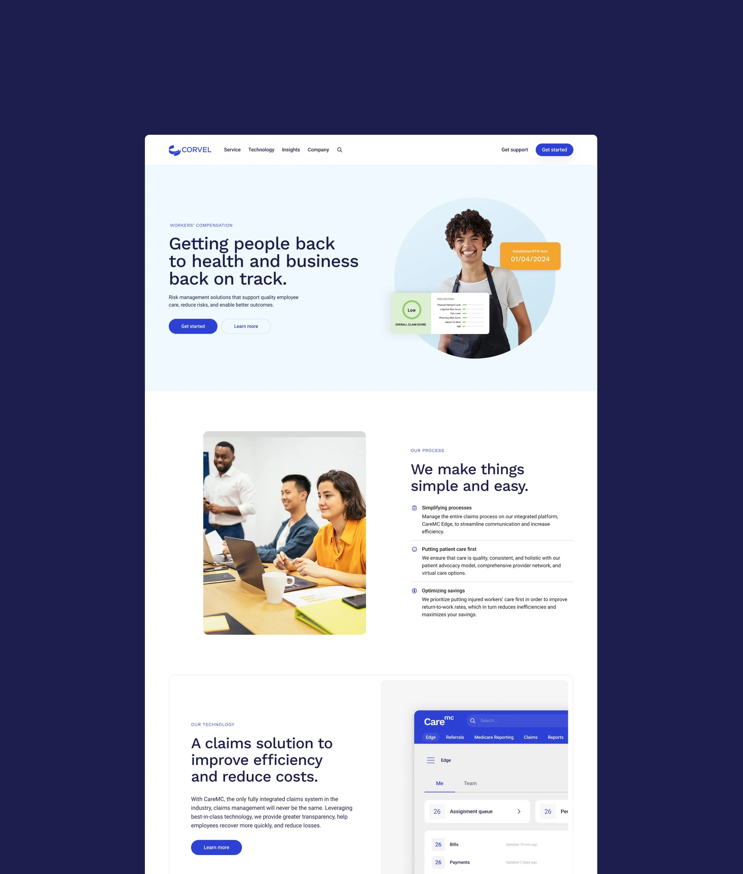 Our brand redesign reimagined CorVel’s identity with a fresh look and tone that reflects the personal touch they bring to all their services. With a new website and accompanying collateral, we ushered in a new era for CorVel.